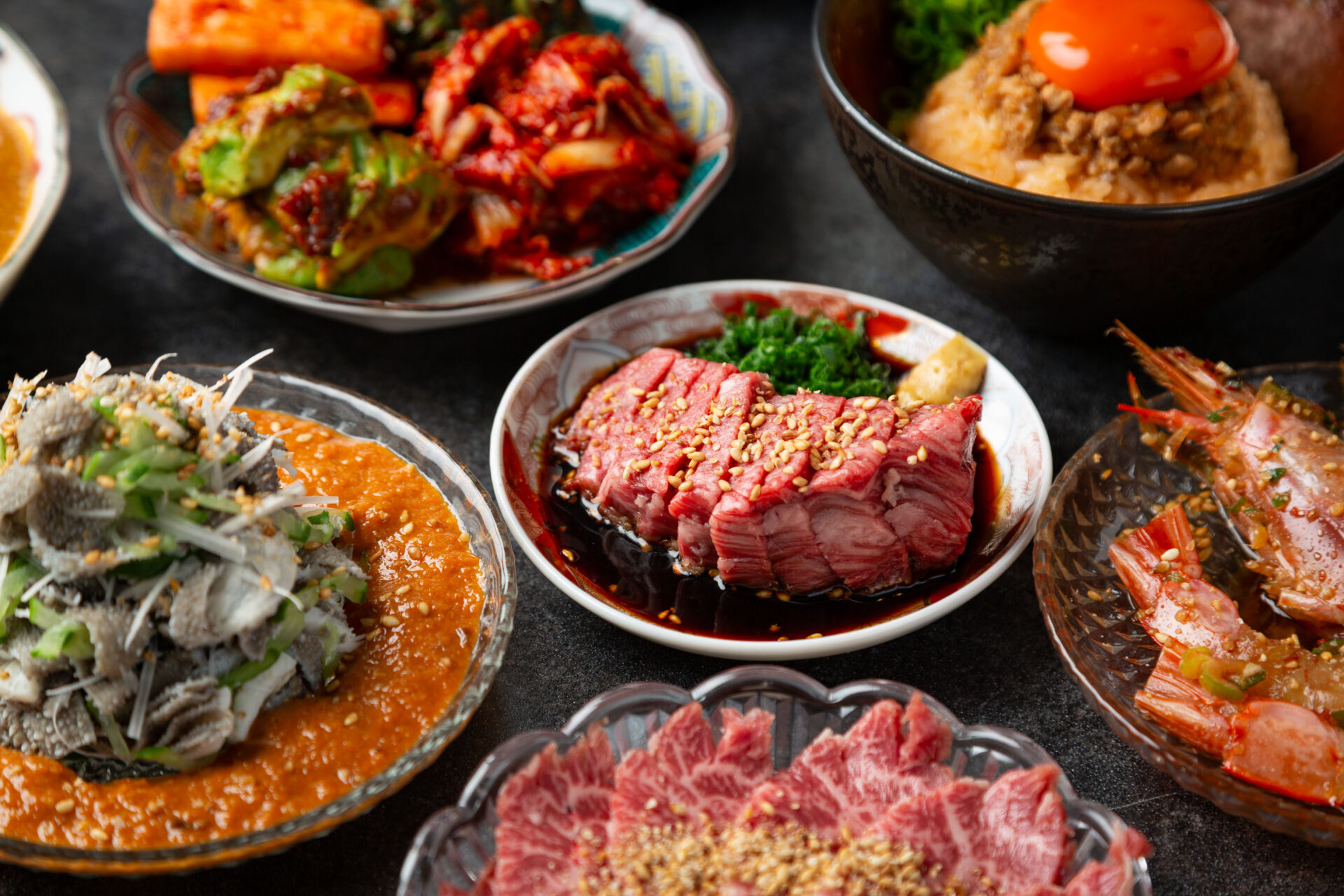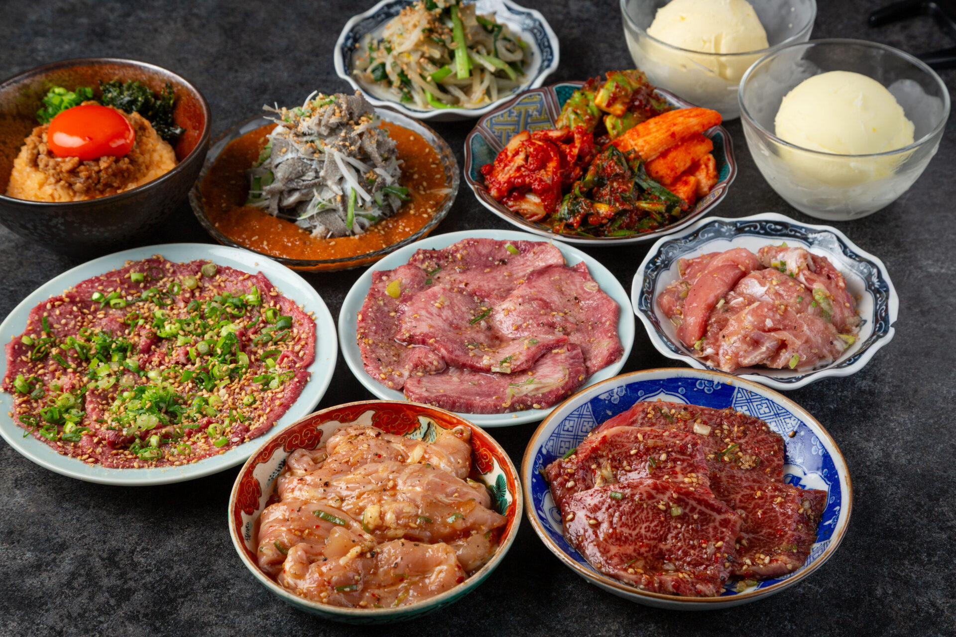 当店では、厳選した牛と鶏を中心に、こだわりの逸品をバランスよく織り交ぜたコースをご提供しております。内容は仕入れ状況により変わるため、その日ならではの味わいをお楽しみいただけます。